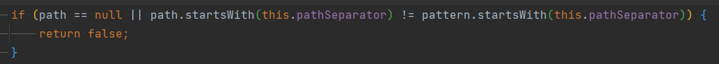 검사하려는 path와 pattern의 시작 값의 형식을 맞춰주자(pathSeparator의 default값은 "/"이다)