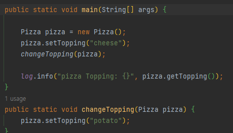 메소드 내부에서 set했더니 토핑이 바뀌네...? Call By Reference 인가..?