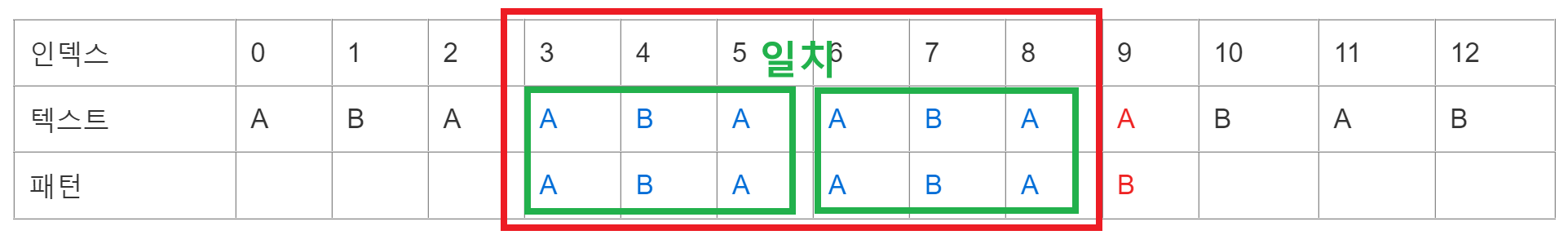 텍스트(탐색 대상) : ABAABAABAABAB