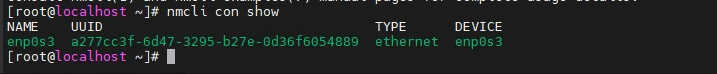 1. nmcli con show로 현재 사용가능한 네트워크 인터페이스 확인