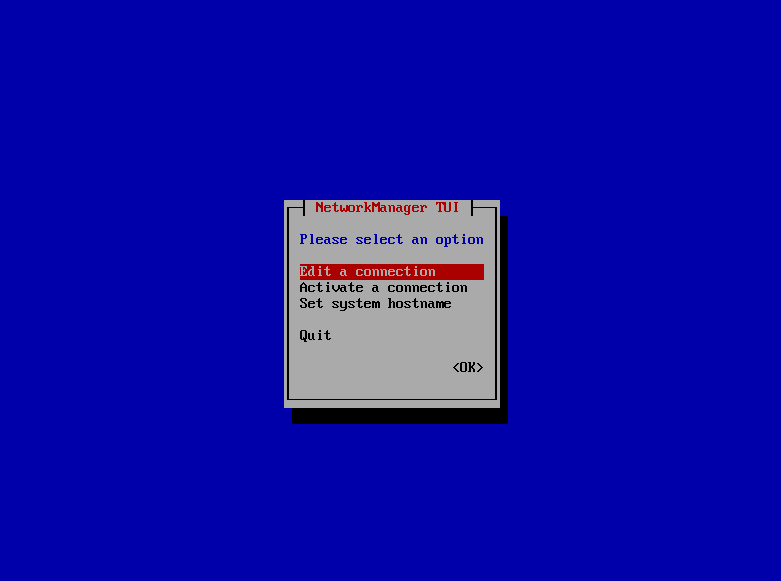 1. 콘솔에서 nmtui 입력 시 아래와 같은 화면이 나온다.