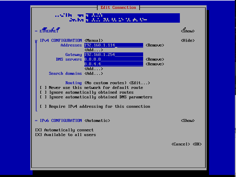 설정을 완료 한 후 최초 화면으로 돌아가 Active a Connection에서 수정한 인터페이스를 활성화(이미 활성화 되어있을 경우 비활성화 후 활성화) 해주면 정상적으로 반영이 된다.