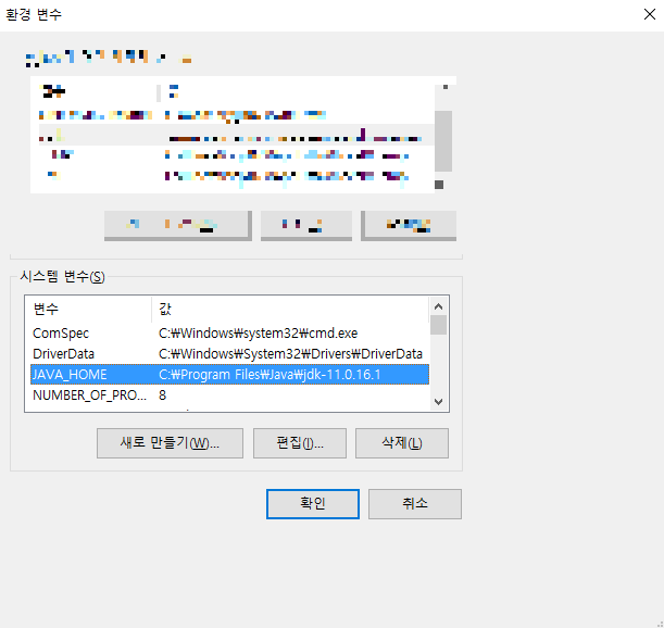 환경 변수 중 시스템 변수에 JAVA_HOME을 원하는 자바 JDK의 경로에 맞추어 편집(없다면 새로 만들기)