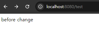 Controller에서는 "/test" path호출 시 before change를 반환하도록 해두었다.